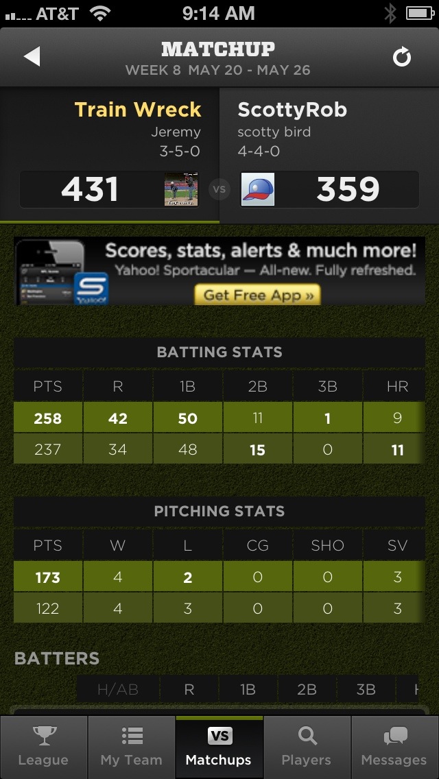 The current state of the Train Wreck Baseball team in Going Yard.